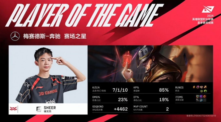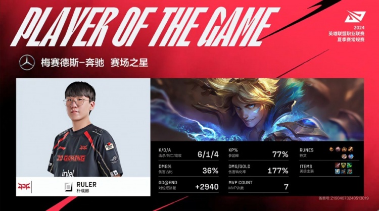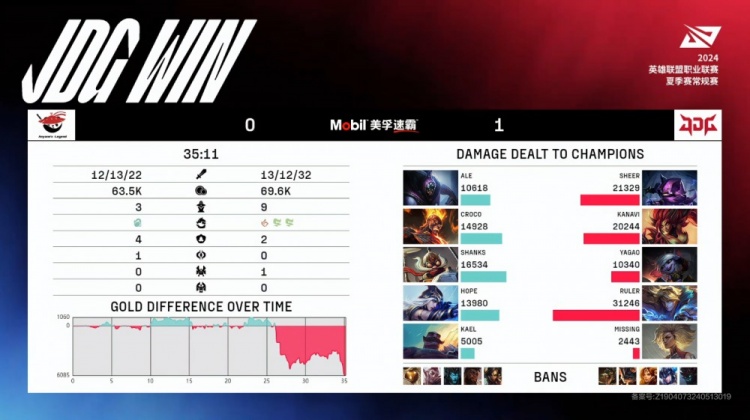 JD Gaming auf der roten Seite: sheer Kennen, Kanavi Elise, Yagao Tristana, Ruler Ezreal, MISSING Karma