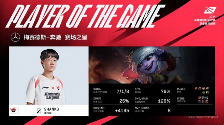 【15:58】Yasuo reißt JD Gaming 's oberen Turm ein. Kennen versucht, die rote Buff zu stehlen, wird aber von Ashes Pfeil getroffen. Leona versucht Kennen zu schützen, wird aber von Ashe niedergeschmolzen. Braum macht Miss Fortune fertig. JD Gaming gewinnt den Kampf 0-2 und zerstört Anyone's Legend 's unteren Turm. JD Gaming liegt um 4k Gold vorne.