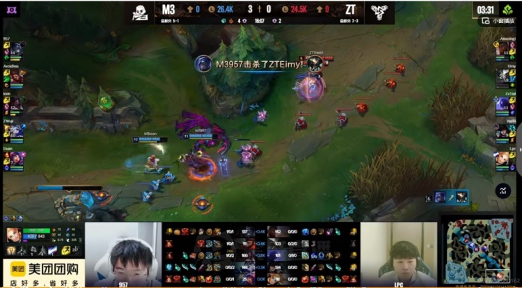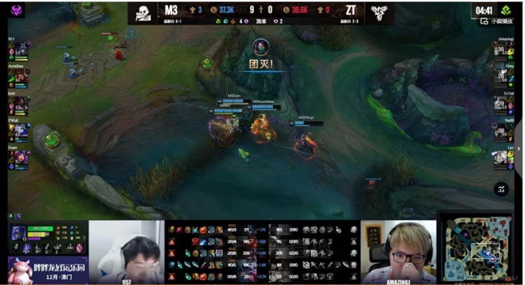 In diesem Spiel wählte 957 seinen charakteristischen Champion Shen in der oberen Lane, und Avoidless 's Monkey gankte die untere Lane auf Stufe 2, beschädigte beide Gegner und half Zwuji und Duan einen Vorteil in der Laning-Phase zu erlangen! Im Mid-Game konnte ZT nicht standhalten, und nach einem gescheiterten Versuch, in der unteren Lane mit drei Spielern zu engagieren, wollten sie um den Drachen kämpfen, aber M3 führte einen perfekten Rückzug aus und wischte ZT aus, wodurch eine wirtschaftliche Lücke von 8K entstand! M3 setzte die Unterdrückung fort, ohne Chancen zu bieten, sicherte den Baron und wischte ZT erneut aus! Sie besiegten ihre Gegner und wurden das erste Team mit sechs Siegen!