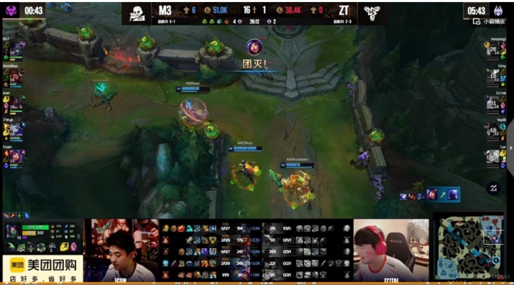 [20:01] ZT versammelt sich, um den Drachen zu nehmen, Avoidless 's Monkey lenkt im Drachenbereich ab, Zwuji's Ashe verfehlt ihr Ultimatum, aber Duan 's Neeko flasht mit ihrem Ultimatum hinein und trifft drei, was dazu führt, dass ZTs Formation zusammenbricht! In der Folge versucht AJ's K'Sante, Ashe abzuschneiden, wird aber von M3's Team gerettet, das flasht, um sie zu schützen! 957 's Shen erzielt einen Triple Kill zum Abschluss, M3 führt einen Teamwipe 0 für 5 gegen ZT aus, sichert sich den Drachen und Baron und öffnet sofort eine wirtschaftliche Lücke von 8K!