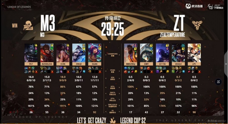 M3: Top 957 , Jungle Avoidless , Mid icon , ADC Zwuji, Support Duan