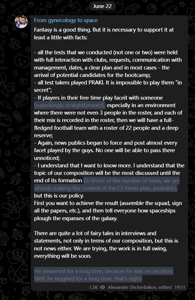 Por lo tanto, a partir de la declaración de sweetypotz, está claro que mencionó el problema de la alineación en muchos lugares, afirmando explícitamente que no hay y no habrá pruebas secretas. Sin embargo, si recuerdas el incidente de electronic uniéndose al equipo Virtus.pro , no hubo noticias antes de eso. La credibilidad de la declaración del manager de C9 queda por verse.