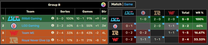 Team WE concluyó la fase de grupos con un récord de 2 victorias y 4 derrotas, anunciando su entrada en el Grupo Nirvana y sin posibilidad de avanzar al Grupo Pico