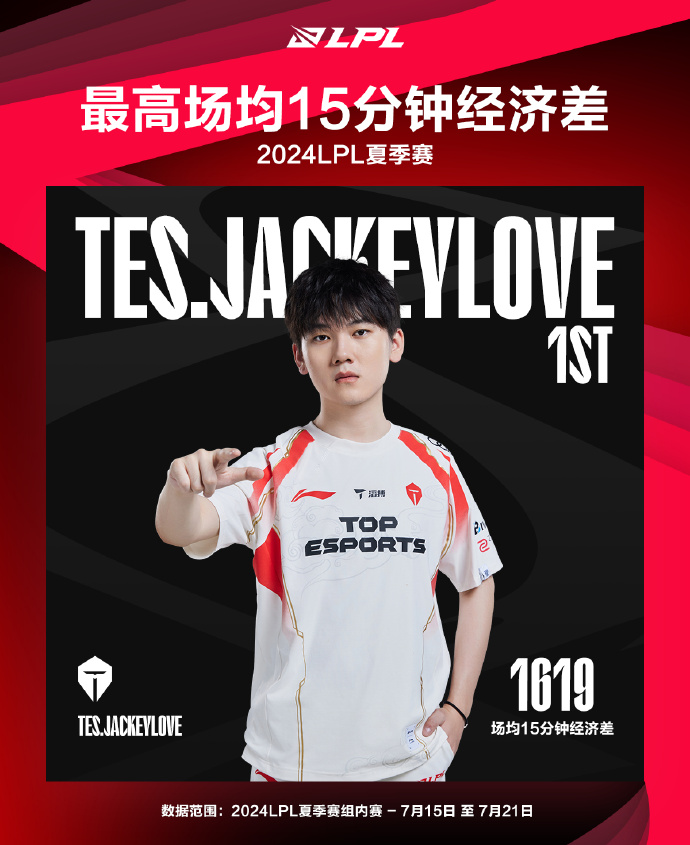 Highest Average Gold Difference at 15 Minutes: 1619 JackeyLove