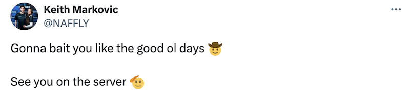 Keith Markovic, known as NAF: "Get ready to sell like you used to and see you on the battlefield!"