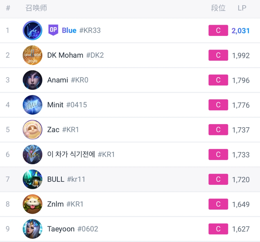 Among the top ten in the Korean server, the only LPL player is RNG's jungler Geju.