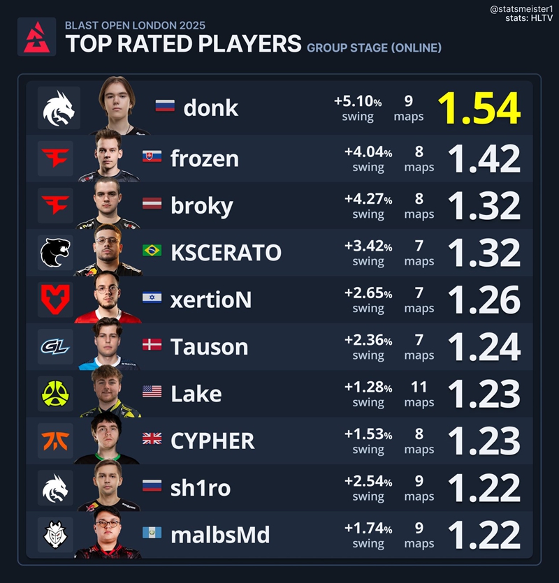 Estatísticas: Donk lidera as classificações da fase online do BLAST London Open