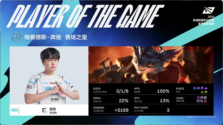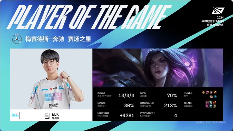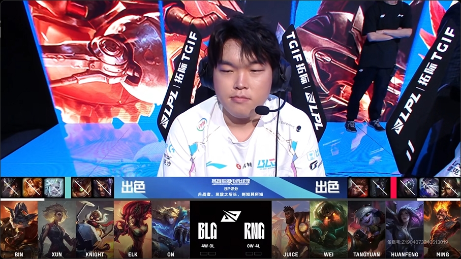 Ở phút thứ 13, Royal Never Give Up tụ họp bốn người để tấn công đôi đường bot của Bilibili Gaming , nhưng sự bảo vệ và hỗ trợ của Alistar đã cho phép Kai'Sa thoát thành công. Royal Never Give Up cũng không thể giết Alistar. Trong khi đó, Bilibili Gaming dễ dàng tấn công và giết trụ phòng thủ đường giữa của Kalista. Sau đó, Royal Never Give Up chỉ có thể công minh chỉ đủ để thu mất tối thiểu.