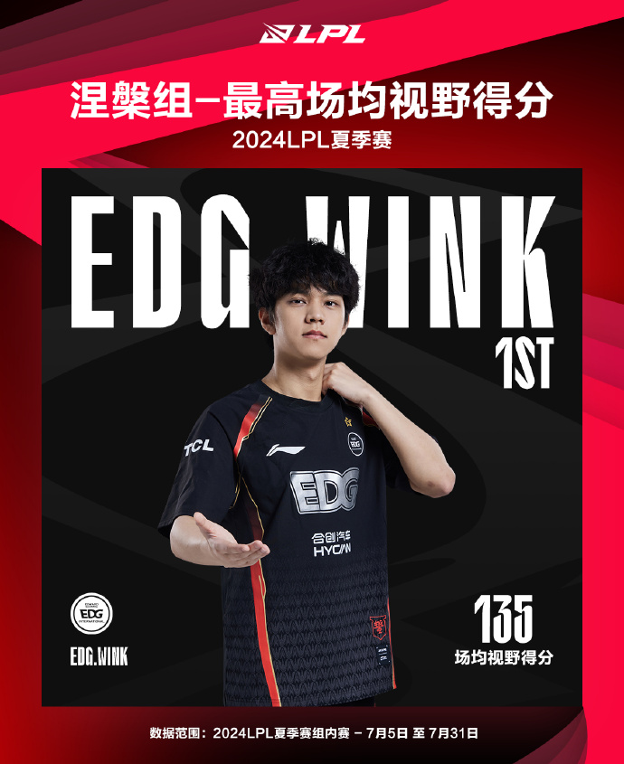 Điểm tầm nhìn trung bình cao nhất mỗi trận: 135 EDward Gaming . Wink