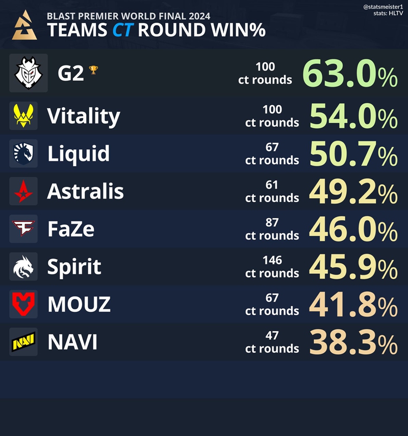BLAST世界总决赛中G2防守最强硬,Astralis进攻最犀利