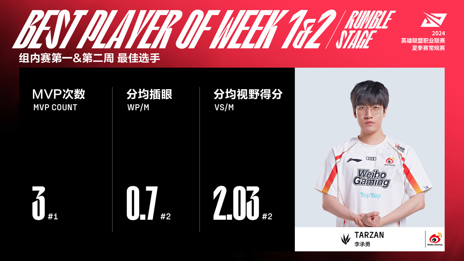 第一&第二周MVP选手—— Weibo Gaming .Tarzan