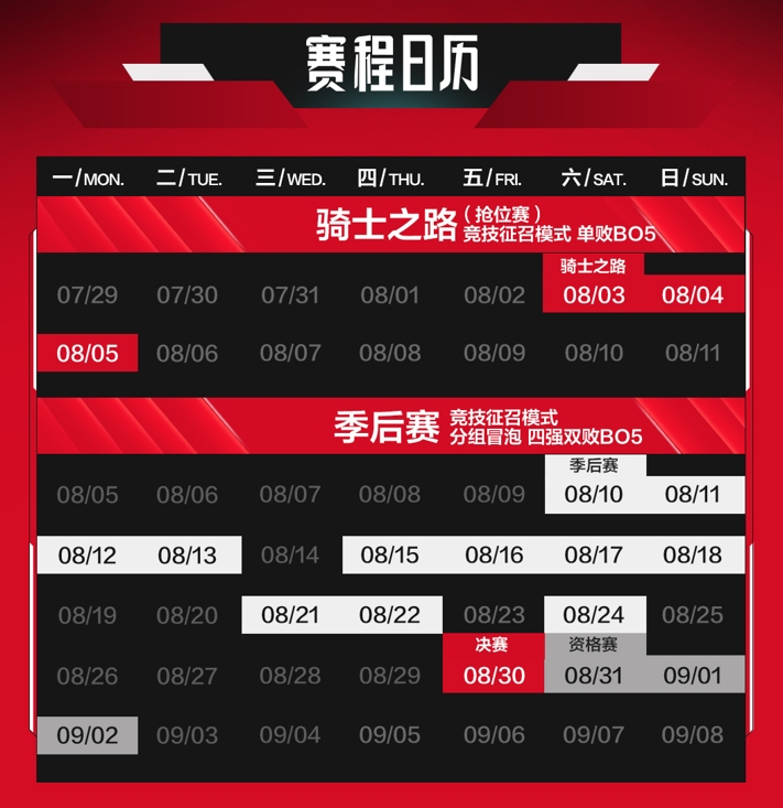 新征程新挑战,8月3日- 8月5日,2024LPL夏季赛骑士之路,8月10日- 8月24日,2024LPL夏季赛季后赛,场场皆关键,无畏竞巅峰!