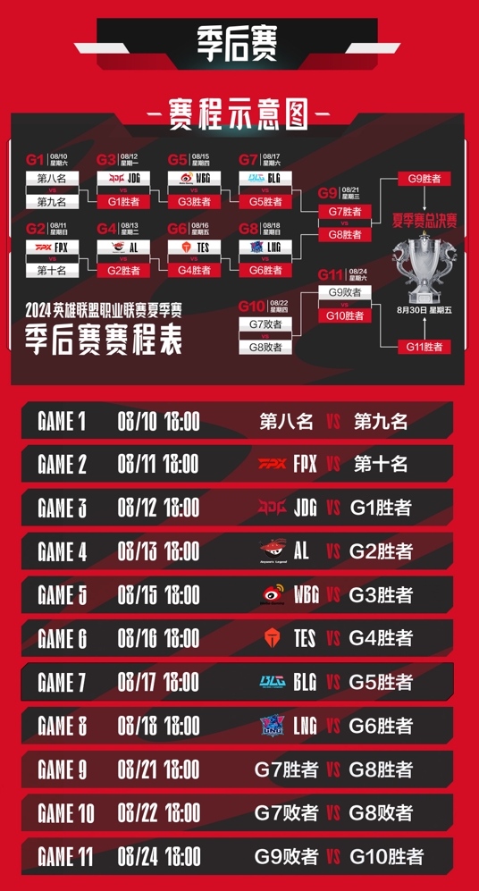 而夏季赛季后赛于8月10日正式开启,本阶段采用竞技征召模式,在分组冒泡,四强BO5双败赛制下根据夏季赛常规赛排名进行对战。