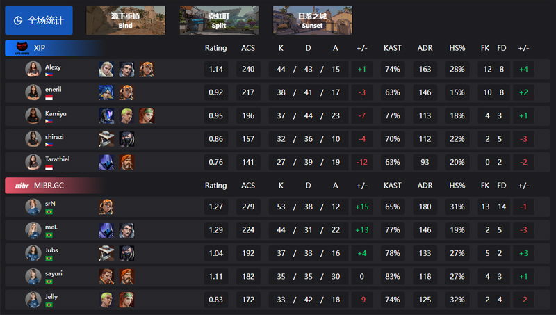 图一源工重镇,MIBR 13:4 XIP,图二霓虹町,MIBR 6:13 XIP,图三日落之城,MIBR 13:5 XIP。来自MIBR战队的srN选手,拿到了全场最高的53总击杀。