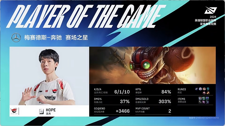 第7分鐘,Kaisa通過上路gank懲罰超出範圍的獨眼女超人。獨眼女超人試圖使用E逃脫,但Kaisa果斷地使用大招打斷他,並成功追殺他,給了Kaisa第一滴血。